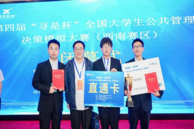 近日,第四届“寻是杯”大学生公共管理决策模拟大赛(西南赛区)落下帷幕。学院2023级行政管理专业朱梦、范振明、蒋浩文三位同学,在学院杨毅、王崧和张明三位老师的指导下,凭借扎实的专业功底、出色的团队协作和果断的决策能力,从众多高校队伍中脱颖而出,斩获西南赛区特等奖,成功晋级全国总决赛,实现学院学子在该赛事中的新突破。