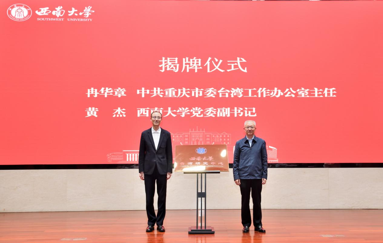 黄杰、冉华章、市台联副会长杜洁分别致辞,对中心成立表示热烈祝贺。希望中心立足重庆、放眼两岸、服务统一,吸引更多优秀学者加入团队,认真做好台湾问题研究,产出更多研究成果,打造具有重庆辨识度、广泛知名度、深刻影响力、工作支撑力的研究平台,进一步提升学校及重庆涉台研究辨识度,为推进祖国统一进程贡献更大的重庆力量。