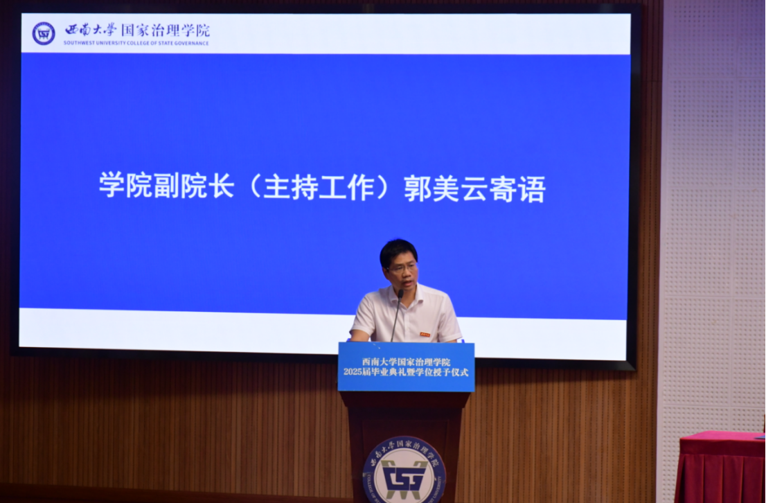 学院副院长(主持工作)郭美云代表学院全体教职员工向圆满完成学业的毕业生表示最热烈的祝贺,与毕业生一起回忆学院的蓬勃发展和同学们的蜕变成长,并寄语毕业生:敏于思,做新时代的追问者;立于行,做新时代的探索者;钝于外,做新时代的清醒者。祝愿毕业生们“心有所往,终至所归”,期待在yl6809永利官网集团建校一百二十周年和同学们再会。