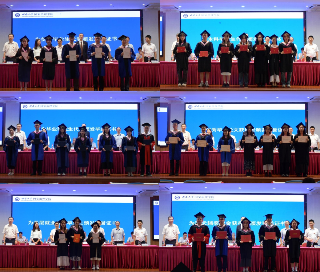 授位仪式由陈丽华主持,副院长张永红、何健分别宣读2025届博士、硕士和学士学位授予决定。学院学术委员会委员为取得博士和硕士学位毕业生颁发学位证书,为取得学士学位的本科毕业生拨穗授位并合影留念。