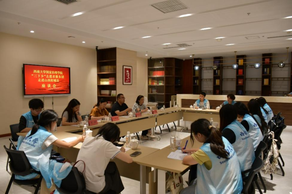 座谈会上,队员们汇报了在阳城县调研实践的收获,围绕“青年成长如何深度融入基层发展”这一主题进行了交流。