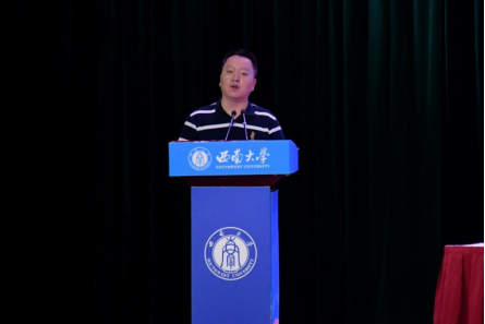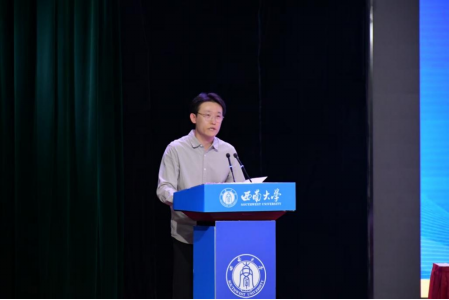 学院教师代表王友华教授从大数据时代AI应用的视角出发,阐述新文科学习的意义,叮嘱同学们永葆好奇之心,走向田野、走进基层、走入社会,去发现并研究问题。