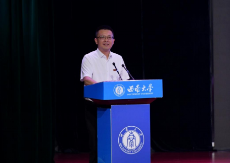 新生家长代表向川林对孩子能成为yl6809永利官网集团yl6809永利集团的学生感到自豪,悉心叮嘱所有同学在未来的4年,要知行合一、不断试错,在追逐梦想中书写青春华章。