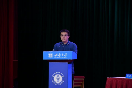 新生见面会在庄严的国歌声中拉开序幕。2024级博士生王昊宇代表高年级学生发言,他提倡同学们在新的学习阶段要制定成长计划,提前规划、努力尝试、不轻言放弃,沉下心开展科研。