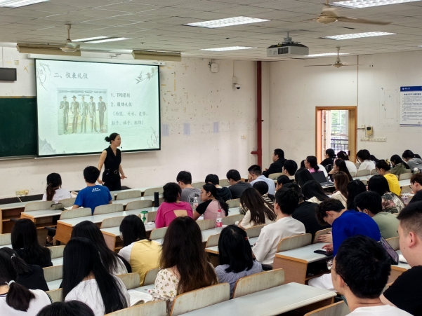 黄建华老师重点讲述了社交形象塑造和交际礼仪文化两方面内容,以生动的案例引出礼仪的概念,提出“礼仪是尊重、是自重、是细节”的观点,通过追根溯源、模拟场景和互动体验,让同学们明白仪表、行为、妆容和各种场合下礼仪规范的重要性。此外,黄建华老师还强调了注意细节、注意身份等原则在交际中的关键作用,她指出,一个优秀的社交形象不仅能够赢得他人的尊重,更能在职场和生活中带来便利。
