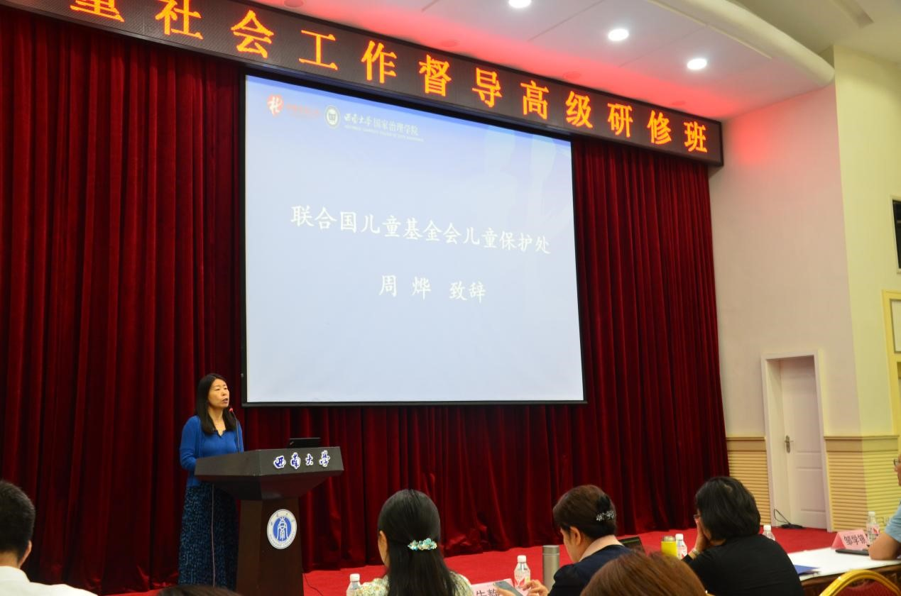 联合国儿童基金会儿童保护处项目官员周烨作开班致辞