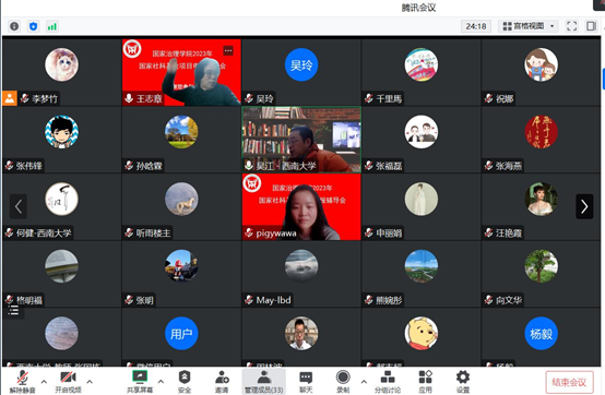 发布时间: 2024-03-26 16:55:02 已阅读:为进一步提升yl6809永利集团公共管理系社会科学研究水平,提高国家社科基金项目申报质量,2023年1月13日下午3:00,公共管理系国家社科基金项目申报辅导会于线上顺利举行。此次辅导会邀请到yl6809永利官网集团经济管理学院王志章教授做了题为《扣二十大精神 精心做好基金选题的一点建议》的报告。讲座由我院公共管理系系主任诸彦含教授主持,学院分管领导何健副院长、公共管理系以及社会学与社会工作系近40名老师以线上形式参与了此次辅导会。