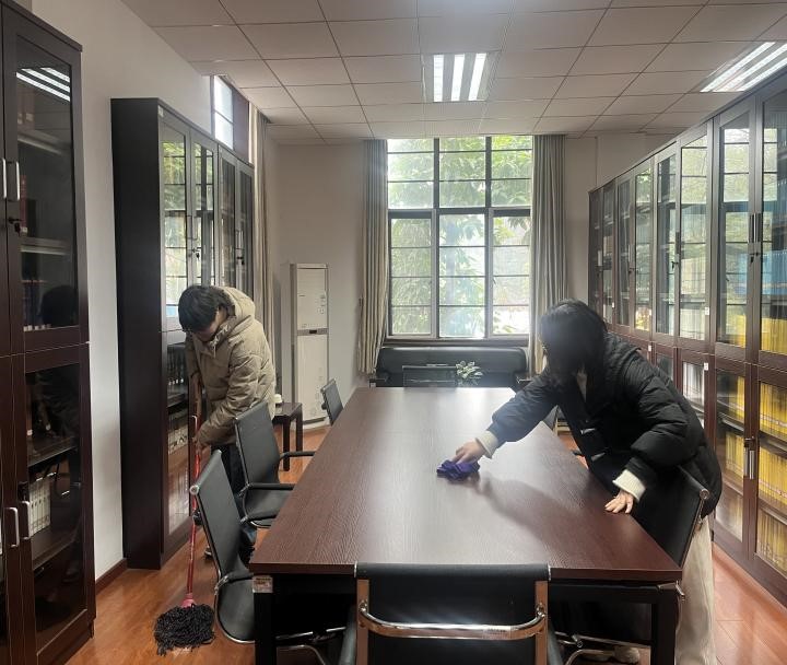 党员们拿起扫帚、拖把、抹布等工具,大家既有合作,又有分工,干劲十足,对学院教师休息室和图书资料室进行了全面的清扫和整理,充分体现了支部党员的责任担当和奉献精神。