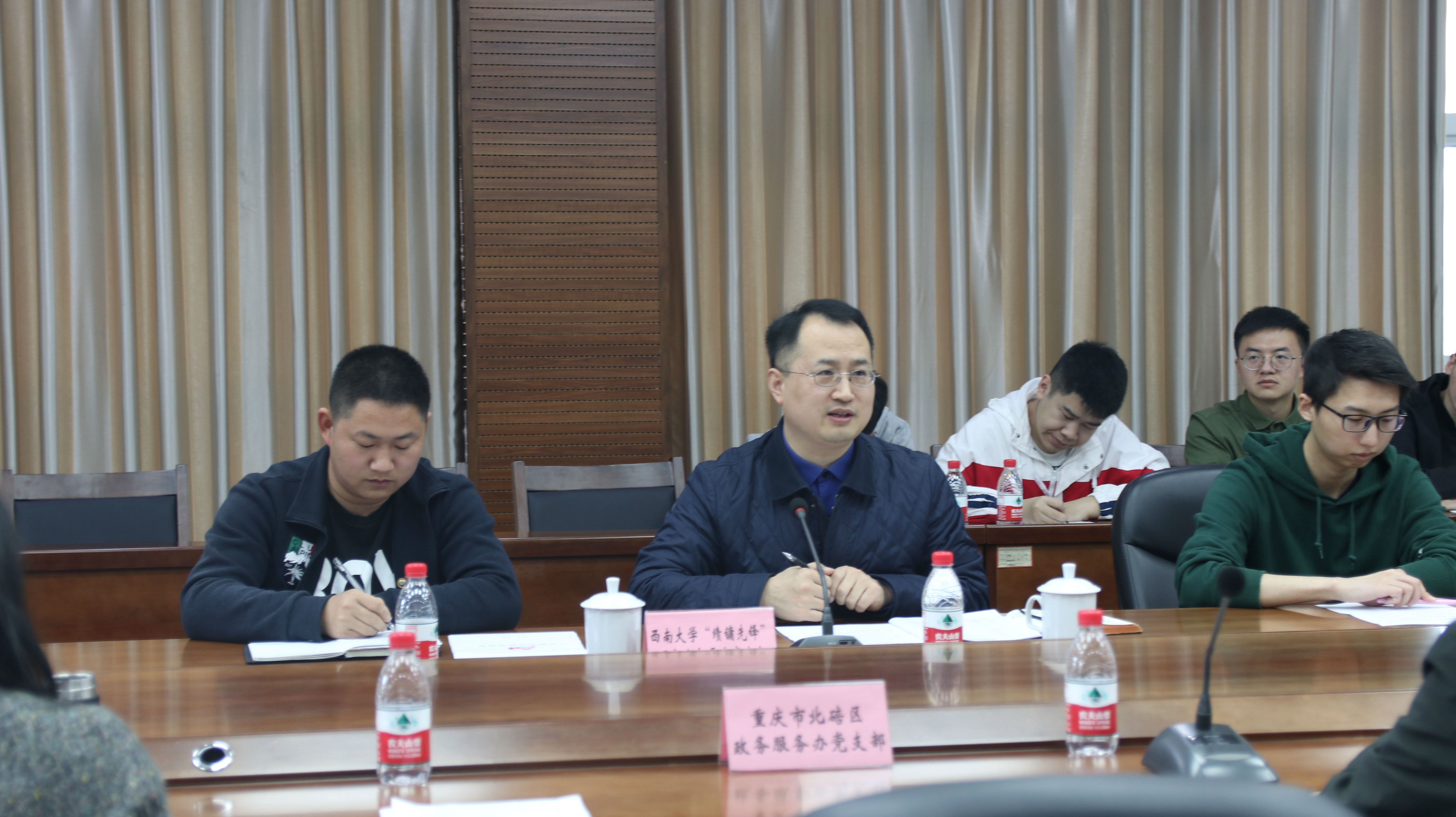 发布时间: 2021-04-26 11:33:10 已阅读:4 月 16 日下午,yl6809永利集团“绩镛先锋”特设党支部赴北碚区政务服务中心,与北碚区政务服务管理办公室党支部开展党史联学活动,共同学习习近平总书记在党史学习教育动员大会上的重要讲话,观看微视频,学习微党课,交流学习心得。北碚区政务服务管理办公室副主任为青年党员专题讲授“几次转折,几点启示”微党课,并介绍了重庆市“渝快办”及北碚区政务服务的经验成效。“绩镛先锋”特设党支部通过政治理论联学、主题党日联办、院地支部共建,引领青年党员走出校园,深入一线,将党史学习教育与地方经济发展、学院专业建设结合起来,推动党史学习教育走深走实。