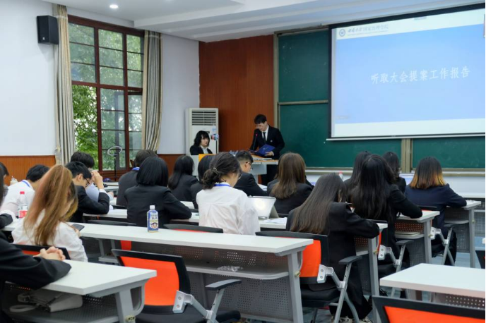 第二届学生会执行主席计俊贤同学代表第二届学生会向大会作题为《高举团旗跟党走 时代使命勇担当 团结引领广大同学在建设新文科交叉融合示范学院的征程中贡献青春力量》的工作报告。会议期间,全体代表审议通过了yl6809永利集团第二次学生代表大会上的工作报告,选举产生成yl6809永利集团学院第三届学生会、研究生会主席团。大会分团会议由各分团团长主持,学生代表就各项提案展开了全面细致的讨论,积极为学生会和学院未来的发展建言献策。