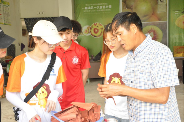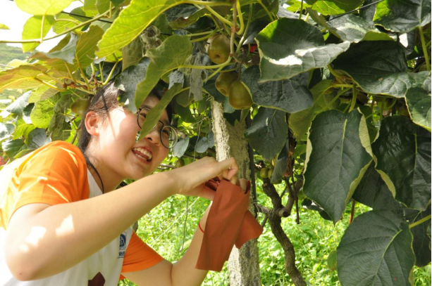 12日上午,亮腾猕猴桃种植基地负责人曹明亮带领社会实践团全体成员前往果园参观学习。他向同学们介绍了果园的基本概况,包括果园的面积、产量、销售渠道等,着重强调了猕猴桃的套袋技术及其作用,为同学们描绘了一幅“农业强、农村美、农民乐”的秀美画卷。