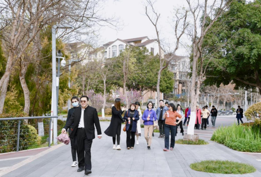 伴着三月和煦的春风,教职工们随后到达了金海湾滨江公园。金海湾滨江公园在重庆两江新区境内,由南向北自大竹林街道至礼嘉街道呈带状分布,在这里,教职工们赏花、漫步,远眺嘉陵江水,融情于景,不亦乐乎。
