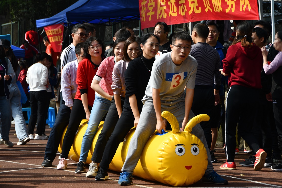 10月23日上午进行了篮球上篮、毛毛虫接力、螃蟹跑共三项比赛。篮球上篮比赛中,学院老师潘孝富、高秀昌、邱德胜、王猛、陶林、张雪峰、黎松、张焕英、殷敏、袁千懿、朱琳参赛。他们奋力奔向篮筐,运球、跳跃、投掷,潇洒大方的动作中仍不失行云流水;随后的毛毛虫接力赛中,学院老师何健、李章吕、李勇强、吴祖刚、欧书阳、王崧、张爱林、张雪峰、杨子路、任丑、汪全洲、诸彦含、叶璐、张焕英、朱琳、史丽、陈静参赛,往日工作中形成默契让老师们在这场比赛中紧密配合,他们欢笑着骑上“毛毛虫”,在同学们的呐喊鼓舞声中奋力冲向终点;最后的螃蟹跑比赛中,学院老师何健、李亮、熊作军、张雪峰、杨子路、李长松、吴祖刚、邱德胜、王崧、张爱林、汪全洲、李烜、许英、殷敏、郭慧云、张雨、袁千懿、陈静参赛,老师们乐观从容,志夺佳绩,以拼搏尽显豪情。