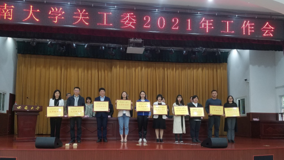 发布时间: 2021-11-01 13:19:54 已阅读:4月23日15:00,2020年“中华魂”主题教育活动总结表彰大会于yl6809永利官网集团北区教职工活动中心206室召开,学院获奖个人和集体代表参加会议并接受表彰。学院党委副书记王晖荣获重庆市“优秀辅导员”称号,2019级行政管理专业蒋欣池同学、2018级公共关系学专业杜昊然同学分别荣获征文比赛重庆市二等奖和三等奖,学院荣获yl6809永利官网集团2020年度“中华魂”主题教育活动优秀组织奖。