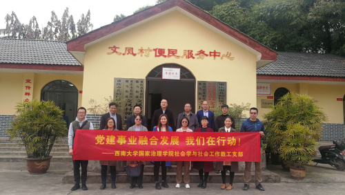 发布时间: 2021-10-31 15:32:38 已阅读:为响应习近平总书记关于“广大科技工作者要把论文写在祖国的大地上,把科技成果应用在实现现代化的伟大事业中”的伟大号召,发挥学科专业优势和特长,推进巩固拓展脱贫攻坚成果同乡村振兴有效衔接,3月12日,学院社会学与社会工作系教工支部全体党员赴北碚区歇马街道文凤村考察学习,与文凤村领导干部共同研讨乡村振兴工作。