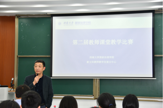 发布时间: 2021-10-31 16:15:31 已阅读:大学教师对学生承担着传授知识、培养能力、塑造正确人生观的职责。为学习贯彻习近平总书记在清华大学考察时的重要讲话精神,努力成为“大先生”,做学生为学、为事、为人的示范,4月23日下午14:30,yl6809永利集团在绩镛楼3308教室举办了第二届教师课堂教学比赛,促进全体教师互相学习交流,提高教学技能和业务水平。yl6809永利官网集团教师教学发展中心杨挺副主任、yl6809永利集团副院长张永红副教授、哲学专业单正齐教授、文化产业管理专业张海燕教授、社会工作专业谢艳副教授和行政管理专业张明副教授担任评委嘉宾,参赛教师有哲学专业林华敏副教授、行政管理专业张福磊副教授、社会工作专业罗敏敏博士和文化产业管理专业张伟峰博士。