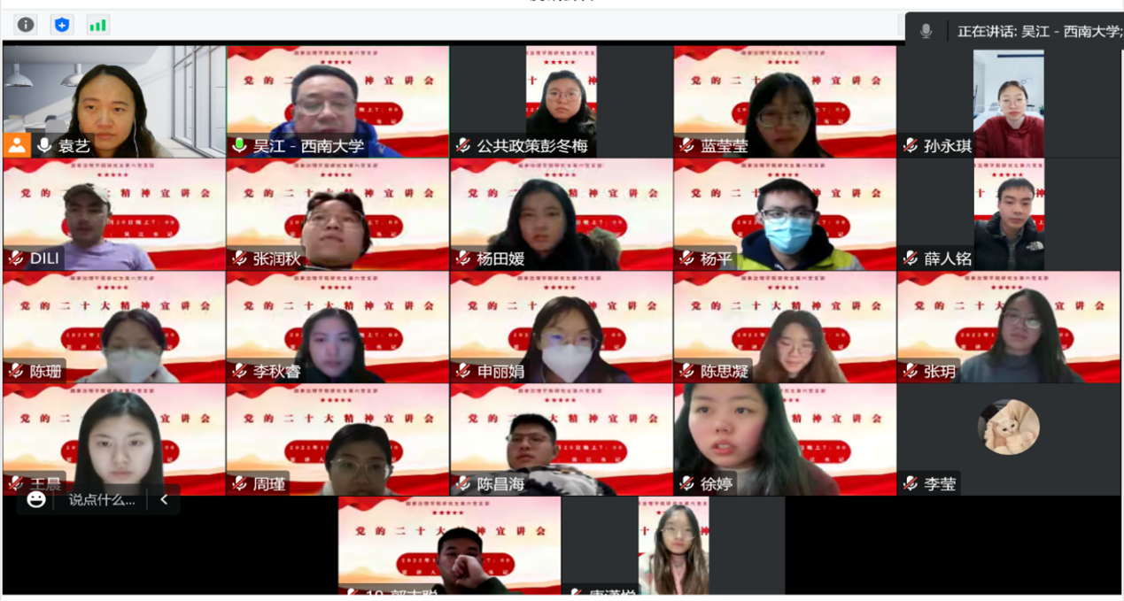 学院党委书记吴江教授为研究生第六党支部宣讲党的二十大精神