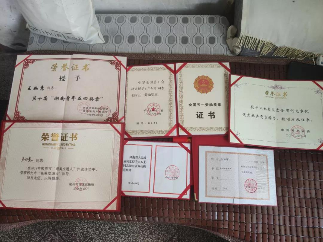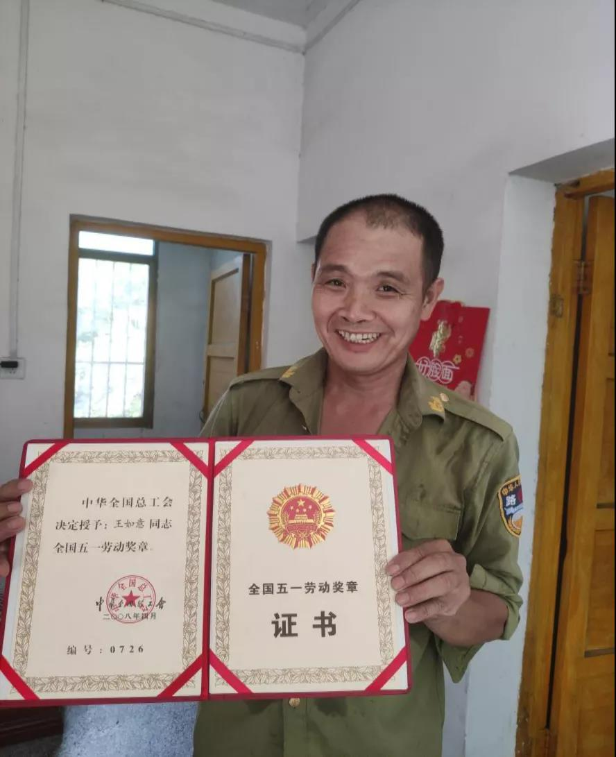 2008年郴州市重大冰灾事件期间,王如意坚守岗位,抗险救灾,荣获全国五一劳动奖章。在参加工作的三十多年里,王如意获得了大大小小数十份荣誉证书,他也向我们展示了他的一些证书,唐阿姨骄傲地说到,他从工作一开始就在拿证书,这里是比较重要的一些都给整理成一箱子了。看到如此多的证书,王叔叔说,这些年党和政府给我颁发了不少的证书,给了我不少的荣誉和鼓励支持,党在中国的发展中起到了巨大的作用,我们现在的生活过的更好了,工作起来更轻松了。王叔叔也提到,自己的父亲干了一辈子的养路工,也教会了他要踏踏实实的做事,面对今后的工作生活,王叔叔说为了感谢党和政府,自己愿意踏踏实实地养一辈子公路,将自己的一生奉献给党的事业。