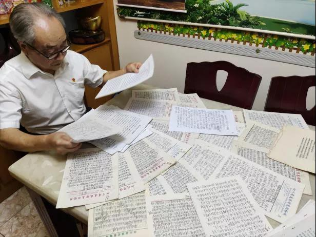 谌爷爷最令人称赞的还是他“活到老、学到老”的终身学习与研究精神。无论是在部队、在前线、在转业后进入测绘局,还是在退休后,他一直坚持努力去发现和总结工作、学习和生活中的问题,将其记录下来,撰写成文并积极投稿发表。谌爷爷与小队成员一起整理出了他所撰写的思想报告、研究论文、课本教材、工作反思、个人感悟等类型的文章共计48篇,有的出版成刊,有的发表在相关期刊、报纸、杂志和单位官网,是名副其实的“高产作家”。由于时代背景和自身年龄的影响,谌爷爷的文章全部是自己手写出来的,这也是他多年来养成的习惯。更值得一提的是,有接近一半的文章是谌爷爷在退休后所写,真可谓是“老当益壮,宁移白首之心”。谌爷爷说:“时代在不断发展,党的思想政治工作也在推陈出新,每每都会有新的要求和课题待我们去认识和研究。所以我总是在不断地学习、研究、提升自己的政治和业务素质,以更好地去完成党交给我的任务。即便是现在退休了,每当中央出台新的政策,领导人提出新的思想理念,我都会主动通过购买书籍或查阅相关文献资料的方式进行自我学习,也会组织单位上的其他退休老党员一起学习讨论,学习之后我喜欢写一些文章来记录我的所思所想,如今也成了一种习惯,也让我能够在退休之时仍能为党的建设事业作出一点贡献。”