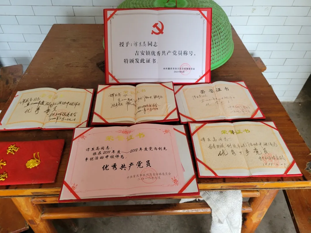 谭显高,男,72岁,中国共产党党员,党龄29年。早年一直有一颗向党靠拢的赤诚之心,但因政治成分不好,其外公是一名地主,一直觉得很可惜没能够早点加入共产党,好在1992年通过组织的考验,光荣地成为了一名共产党员。谭显高一直以党员的身份和准则要求自己,因其积极响应村里的各项政策,参与村里生产建设而获得村里人的肯定。在1995年,他成为了该村村长,之后连任三届,在岗位上兢兢业业。退下职位后,他仍然心系村里的事,活跃在村里的一线工作上,由于村里工作做得好,多次被评选为“优秀共产党员”以及“优秀队长”等。